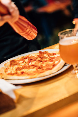 Our delicious Neapolitan style pizzas are all hand stretched and cooked to order in our open kitchen by our pizza chefs. Our open fire pizza oven heats up to 400°C to create a crispy flame fired base.